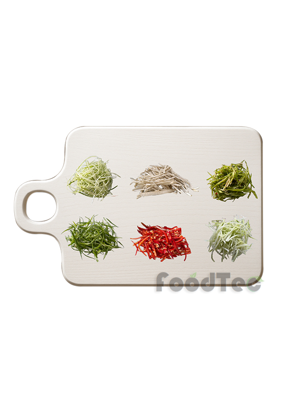 • 适用于辛香料及菇类切丝,例如: 芹菜、青葱、辣椒、蒜苗、杏鲍菇等,需要产出大量切丝产品之场所。
